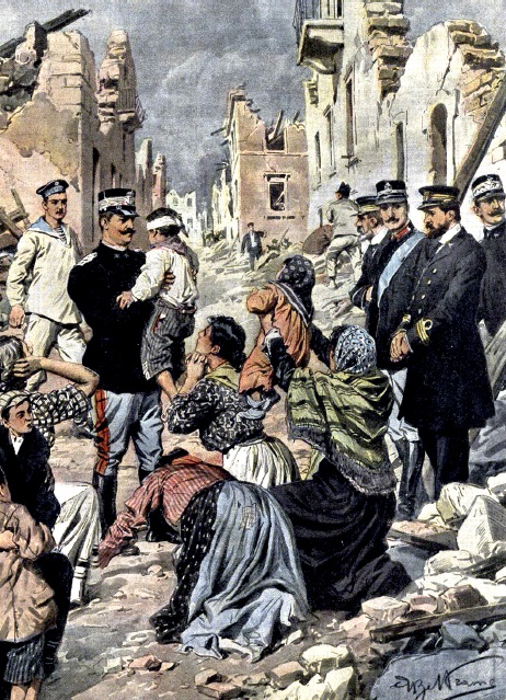 DIDASCALIA: Per posizione geografica l'Italia fu terra di approdo, a volte benefiche (la Magna Grecia) a volte meno (i Fenici); poi, dopo la decadenza e il crollo dell'Impero romano, fu teatro di scorrerie e di invasioni. A lungo devastata dalle guerre per l'egemonia sull'Europa e dominata per secoli da Case regnanti a Madrid o a Vienna, volte a privilegiare i loro interessi dinastici, con l'unificazione nazionale del 1861-1870 (nata dai Congressi degli scienziati italiani molto più che da cospirazioni) l'Italia si dette ordinamenti di avanguardia. Lo storico Alessandro Mella ne documenta aspetti poco noti ma nondimeno fondamentali nel saggio “Il problema del Sistema Soccorso nell'Italia postunitaria e giolittiana “(ed. Marvia): rassegna, ricca di illustrazioni, dell'opera svolta da Regio Esercito, Carabinieri, Croce Rossa, Civici Pompieri nella quotidiana sfida opposta da calamità naturali (inondazioni, valanghe, movimenti tellurici,..) e incidenti (anzitutto ferrovieri) di vaste dimensioni. La Protezione civile arriva da lontano. Vittorio Emanuele III e la Regina Elena accorsero a lenire lutti e ferite del terremoto di Messina-Reggio Calabria (1908): una catastrofe affrontata con slancio di unità nazionale.